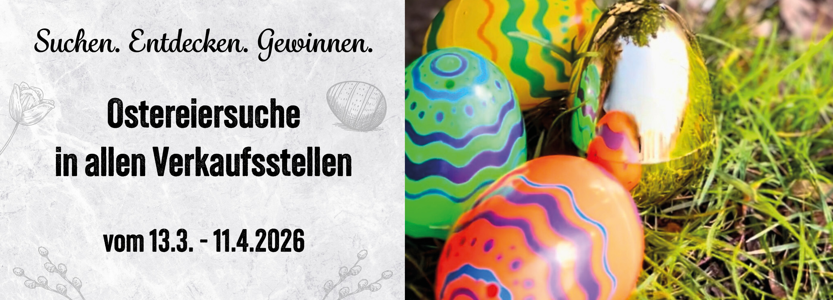 Der Osterhase versteckt im Zeitraum von 13. März bis 11. April über 250 Ostereier mit tollen Gewinnen.