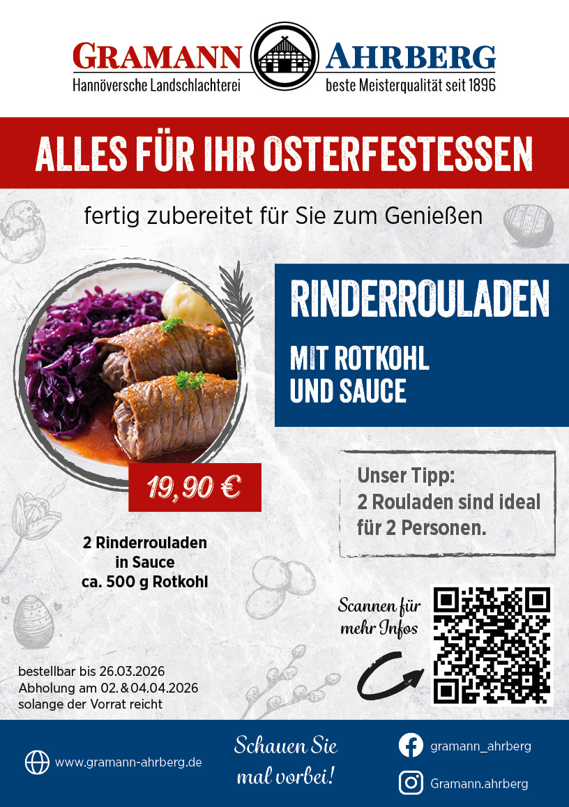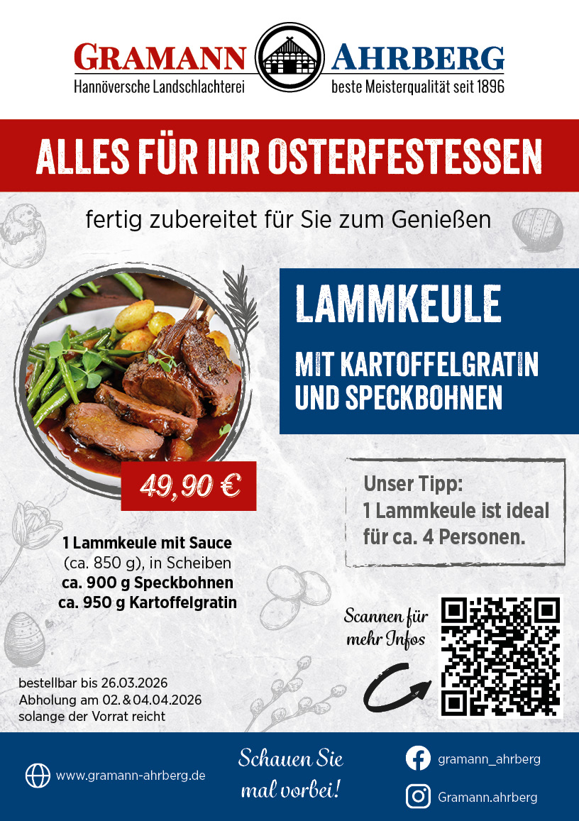 Wir freuen uns, dass Sie sich für ein Qualitätsprodukt aus dem Haus Gramann-Ahrberg entschieden haben. Mit dieser Zubereitungsempfehlung möchten wir Ihnen bei den letzten und entscheidenden Schritten zu Ihrem Oster-Festessen beiseite stehen: